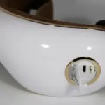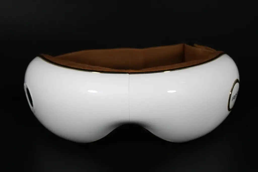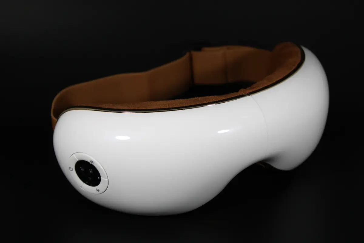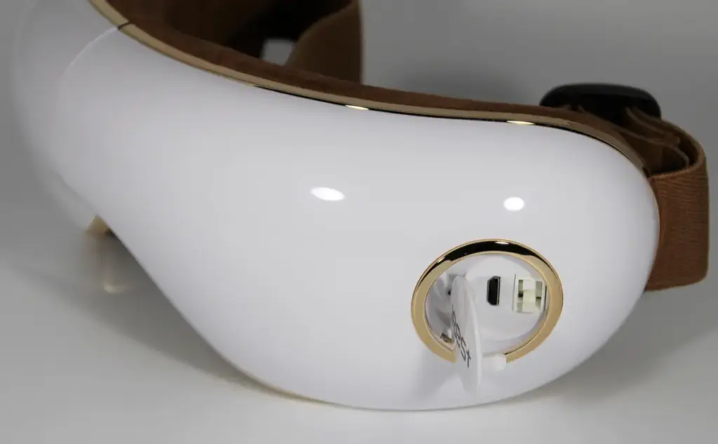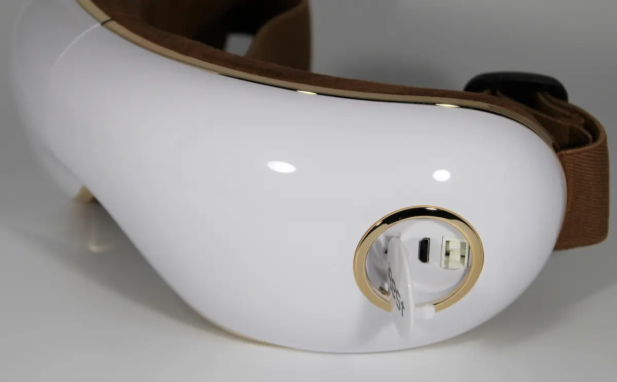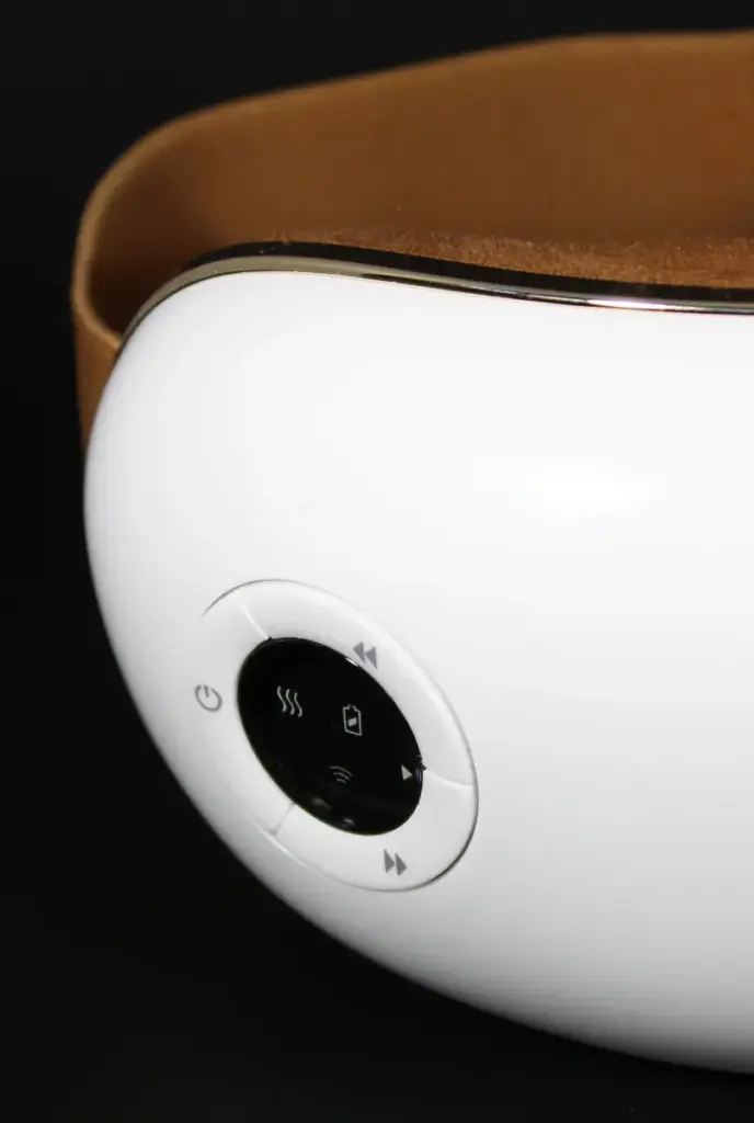 Die zwei in der Massagebrille integrierten Lautsprecher lassen sich durch Knopfdruck in der Laustärke verändern.